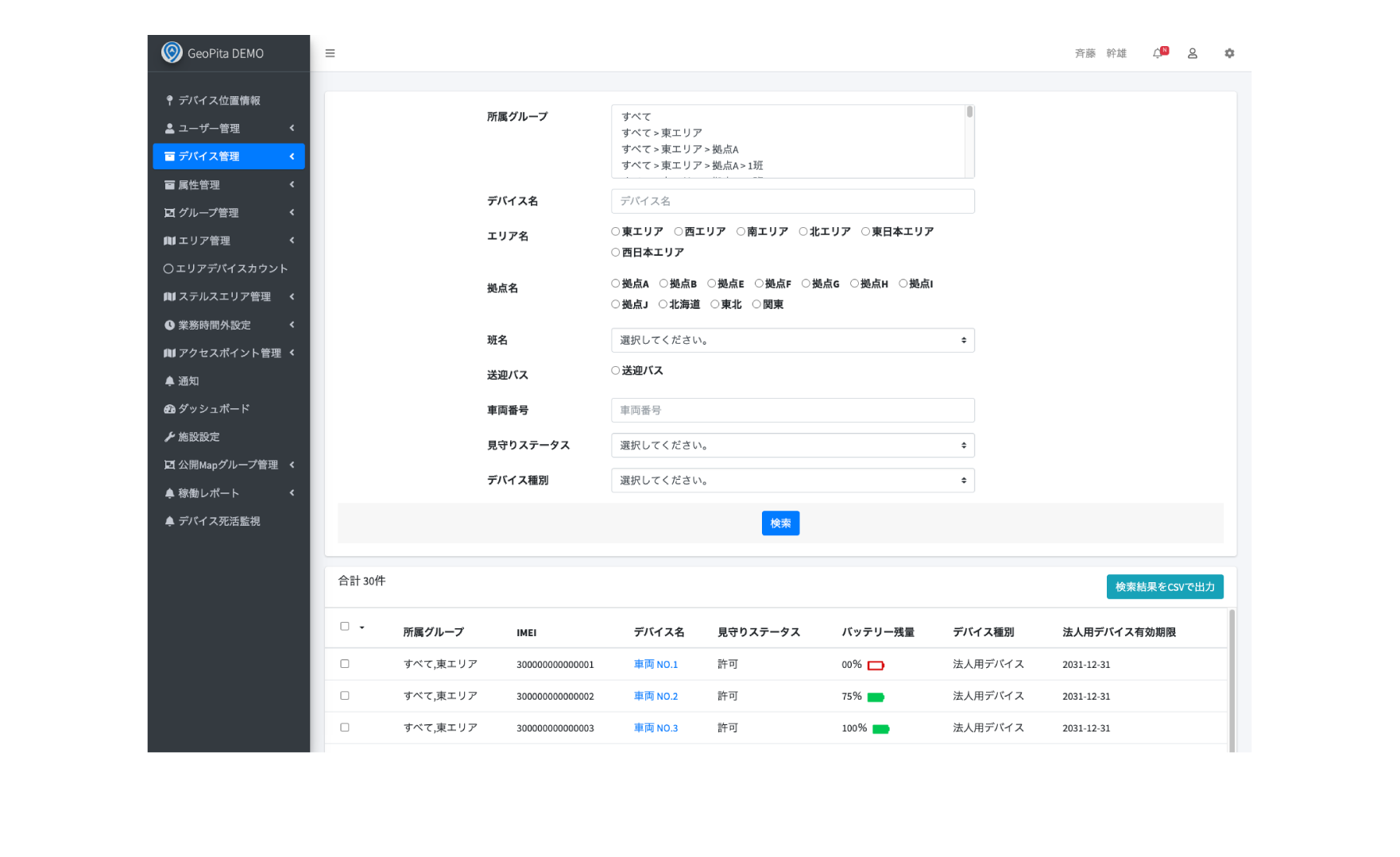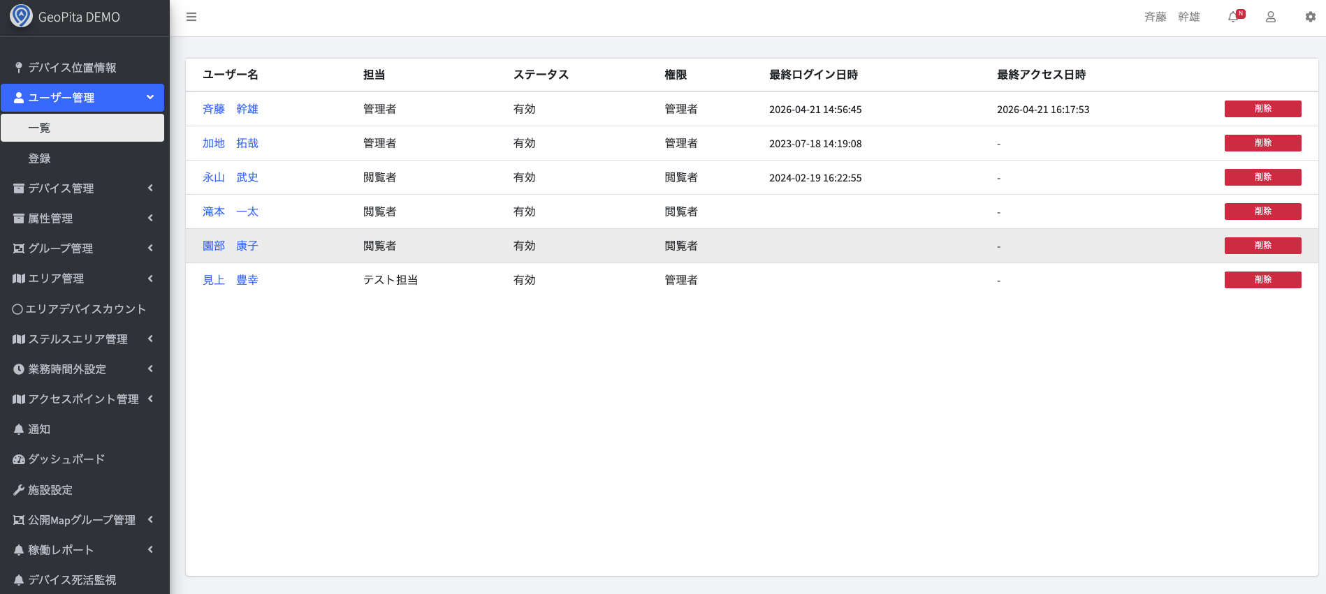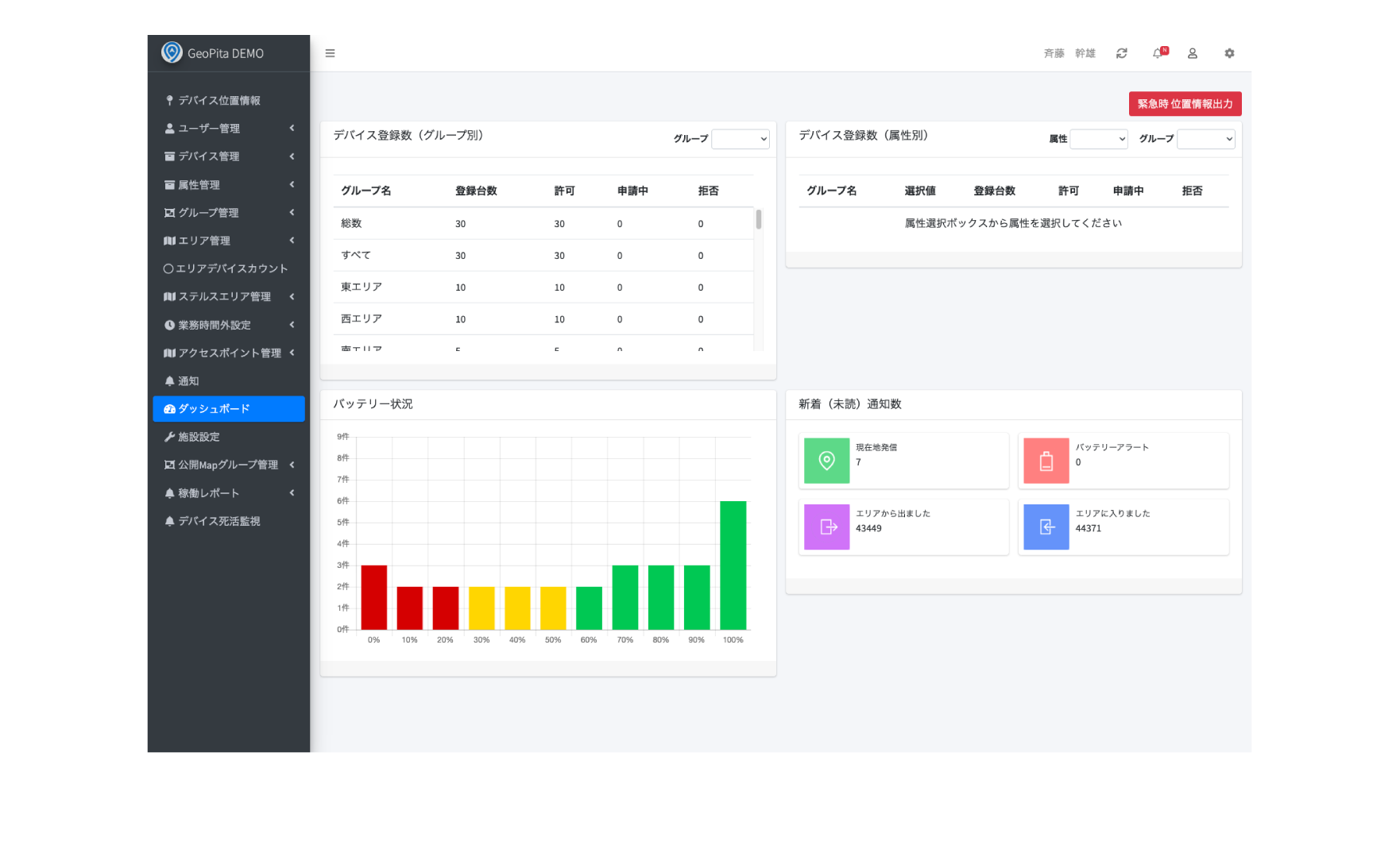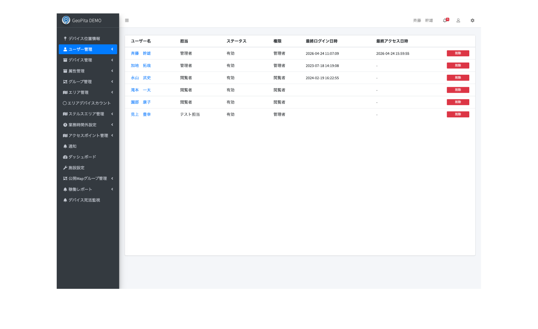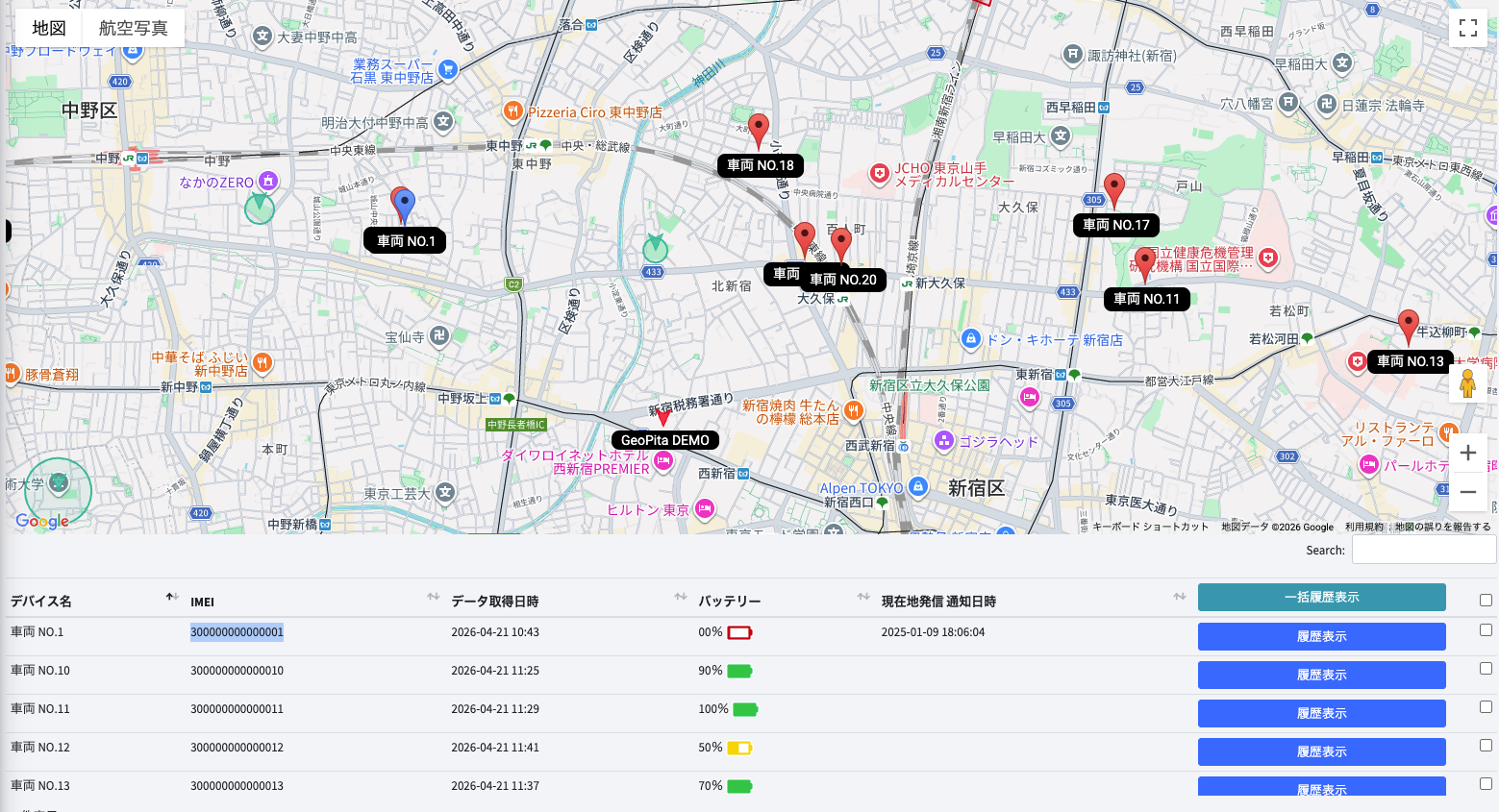 位置情報や稼働情報など、GeoPitaで取得した情報を